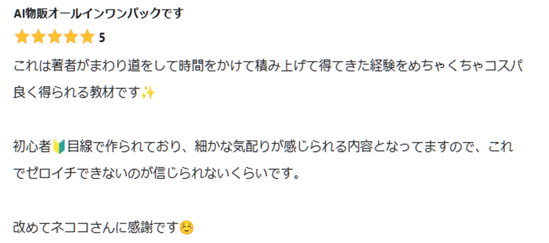 ノウハウコレクターから脱却し、いまでは月50万以上稼いでるネコココンサル生さんから!「コンサルの内容そのまま」とのことです😅