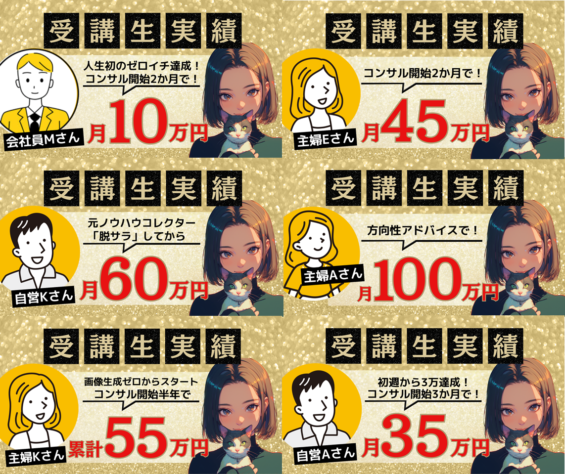 個人差は当然ありますが、画像生成未経験者がゼロからスタートしてAI物販で月10万を稼ぐには、地道に取り組んで2~3か月程度が現実的な達成可能期間です。