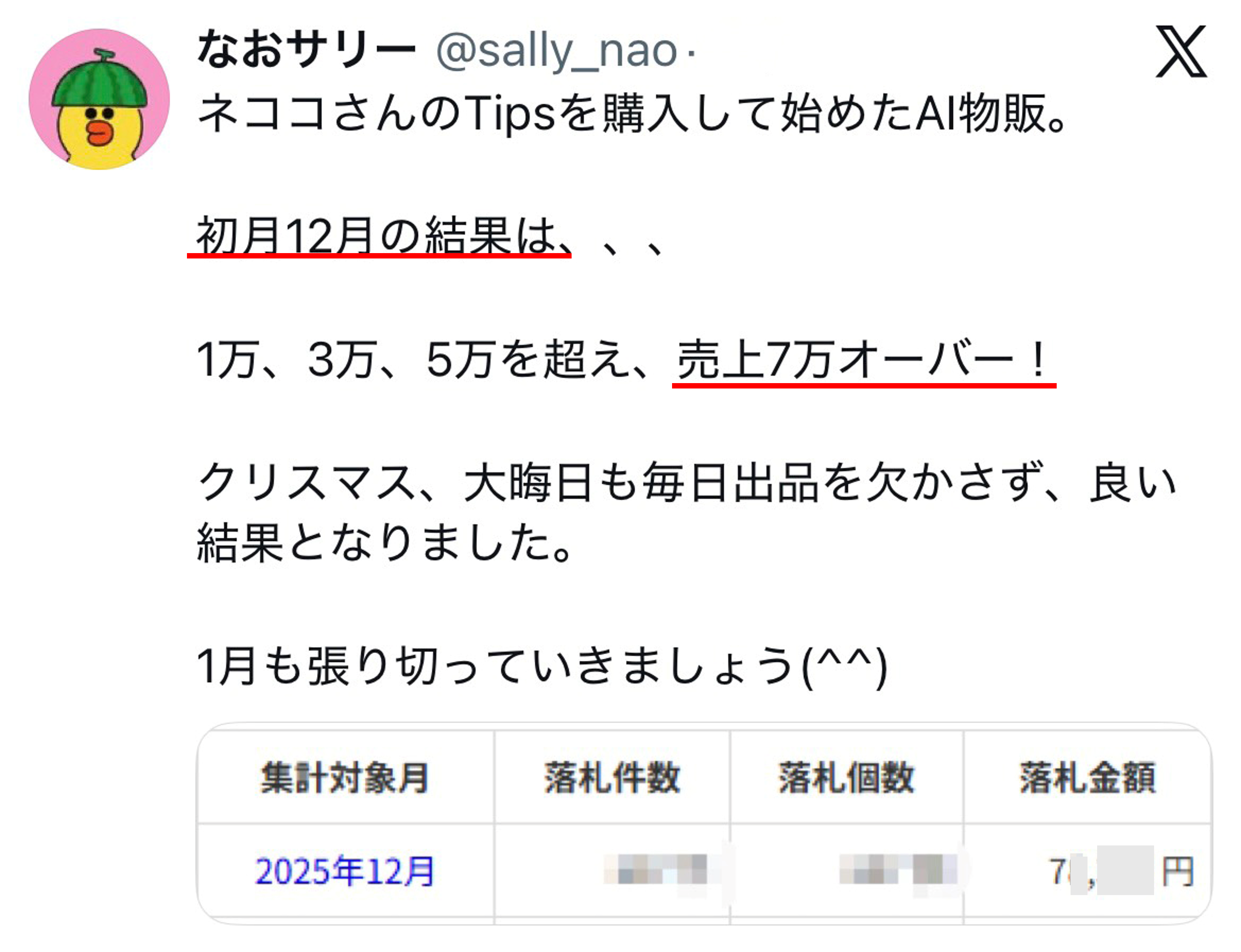 2024年12月には最高月商130万円を達成!!