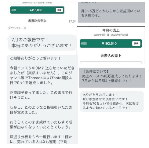 寝稼ぎさんのThreads×note販売では