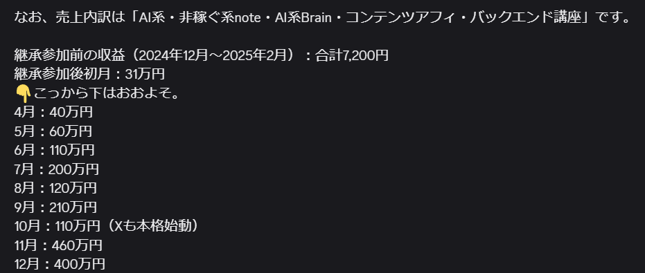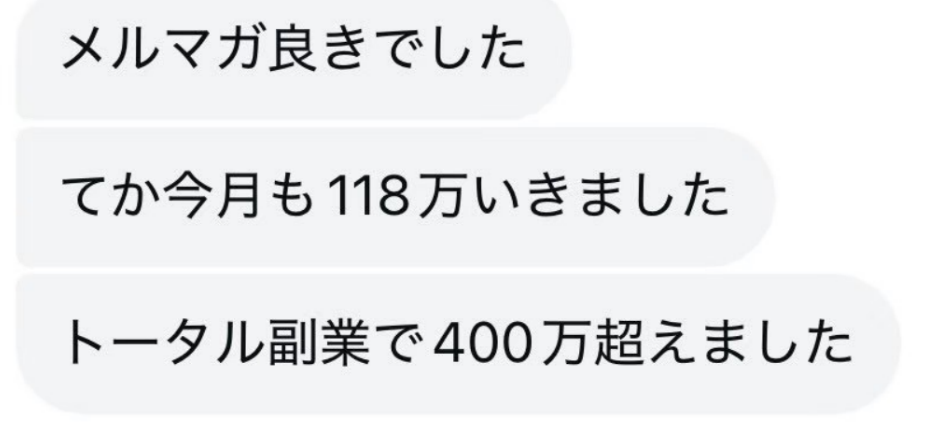 ①副業400万円(この方は脱サラ&年収2000万プレーヤーに)