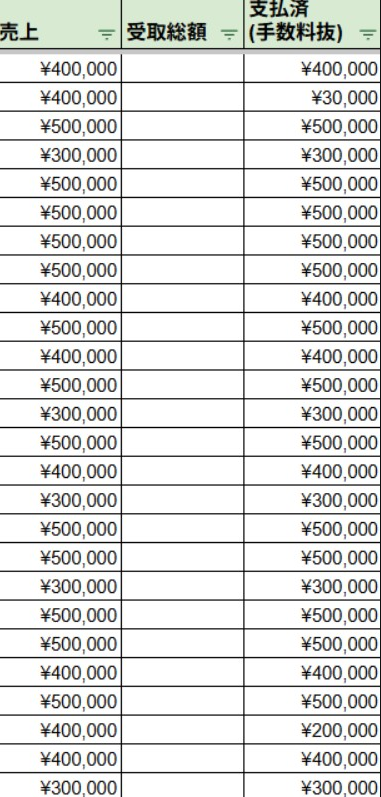 売上60万ちょいで手数料20%引かれてこの金額です