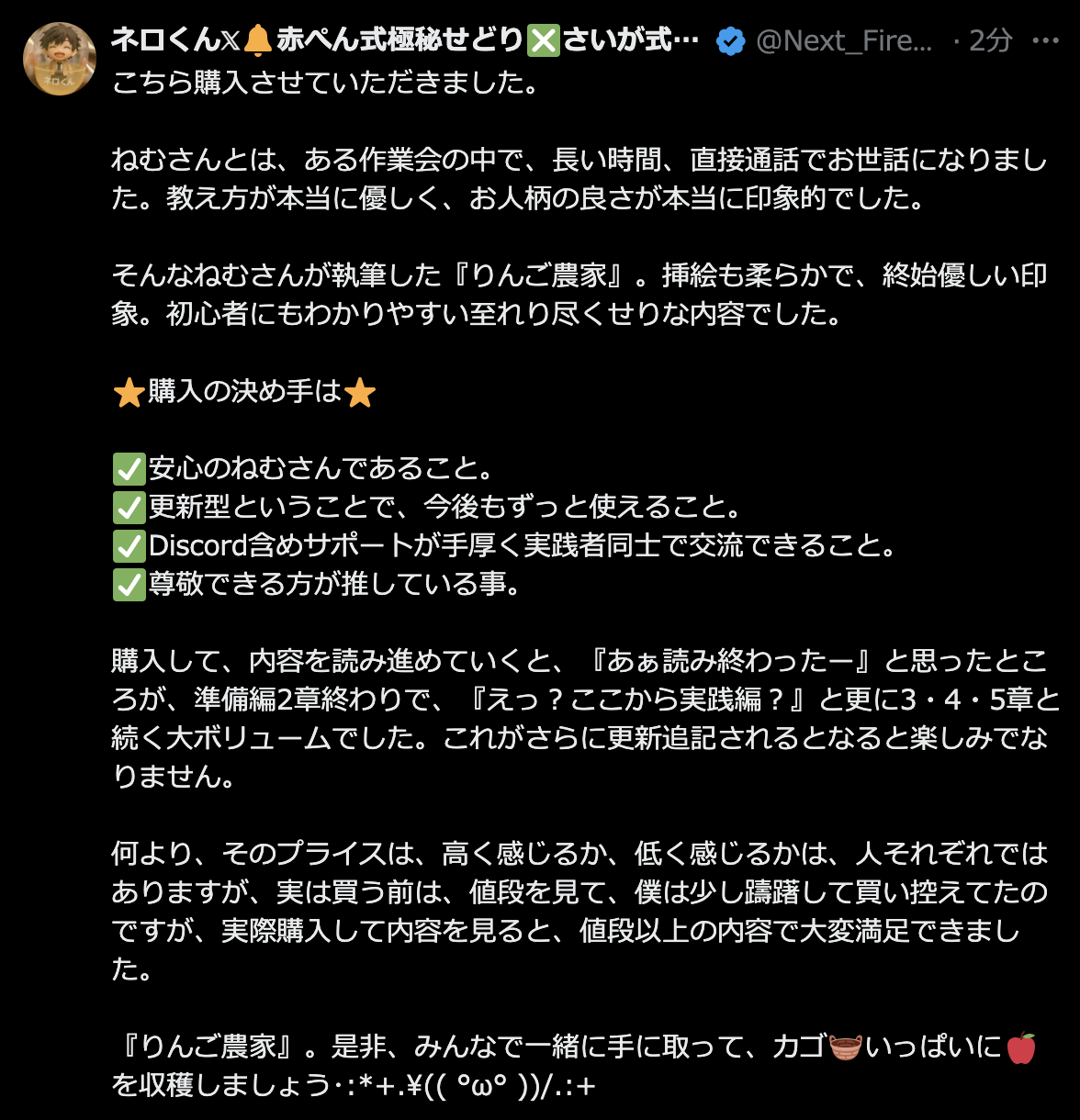 Xのポストなどで「よかったよ!😊」と紹介してもらえれば、