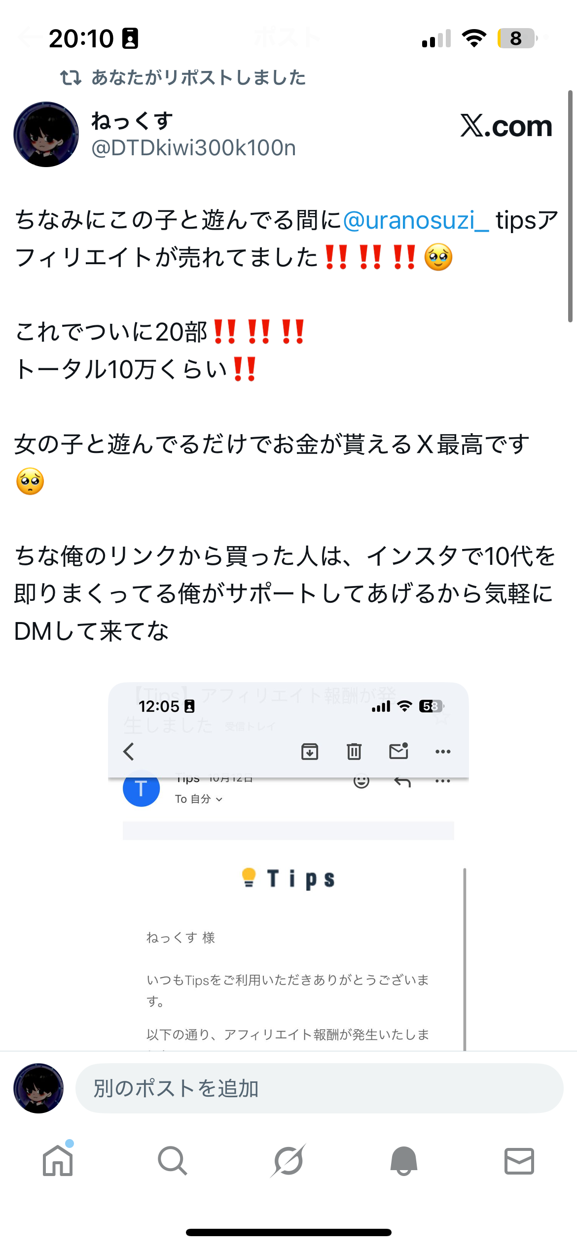 少しでも可能性があるならこのtipsを書いた主のように、女を支配して性◯隷にし、ポストをすれば沢山の反応をもらえ、あのアイコンでありながらも女の子の方からオフパコ依頼が来る。そんな風になりたいだろうか?