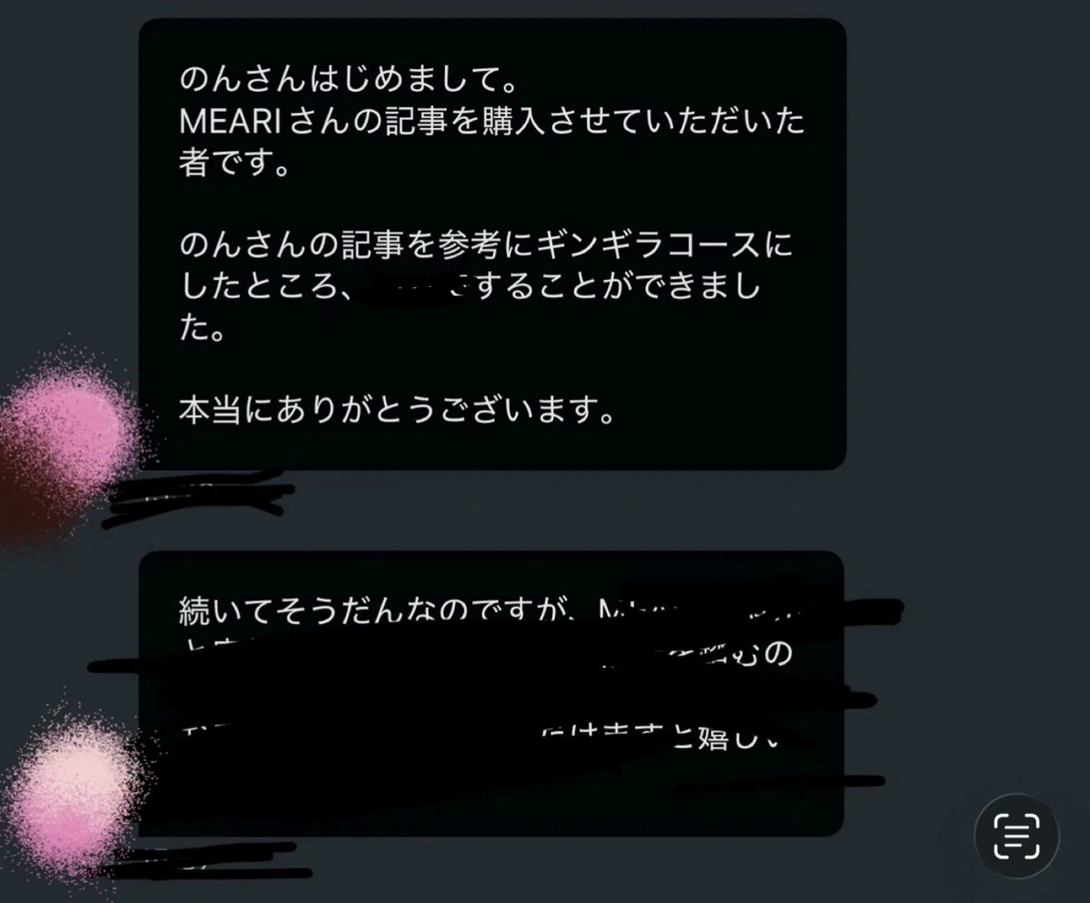 夜の王「のん」です。まず成果報告が来ております。こういう報告じゃんじゃん待ってます✨