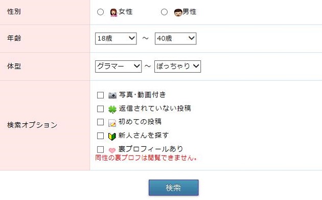 ぽっちゃり女性向け出会い系アプリなので、理想の体型や年齢の女性や男性が簡単に検索できます。