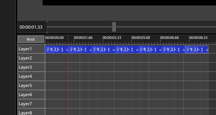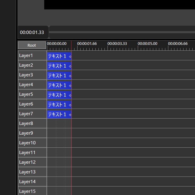 beta6でテキストファイルのドラッグアンドドロップができるようになりましたが、1つのテキストで1つのレイヤーが使われる上に同じフレーム位置に表示されるため全て重なってしまいます。