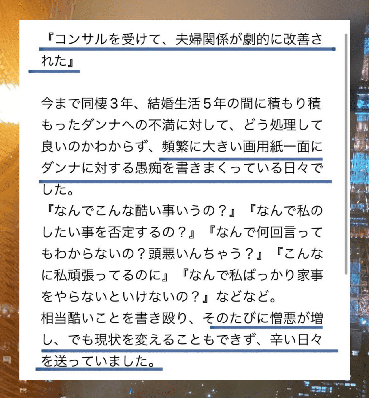 before 夫とは喧嘩も多く、激しい言い合いをすることもたくさんあった。