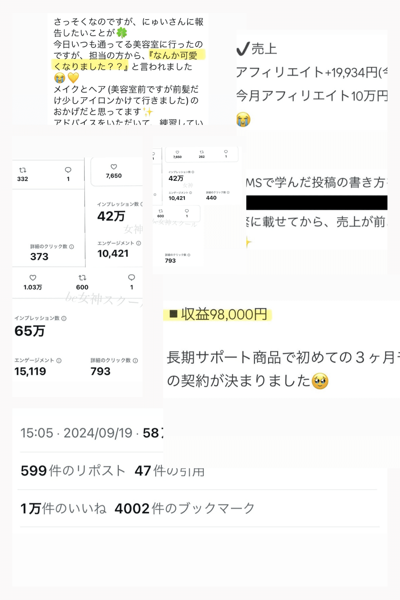始まって3週間で収益10万円を超える人や、美容垢での万バズが増えてさらに1ヶ月と少しで0−1を達成する方がどんどん増えてきました。