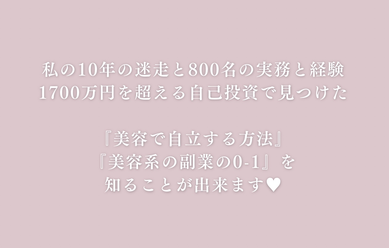 あなたも大好きな美容でお金や時間の制限から解放されて、友人や家族とたくさんの楽しい時間を過ごせる日々を手に入れてください。