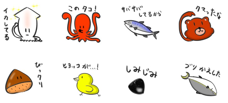 日常で普段使いできるちょっとした言葉をスタンプにしました