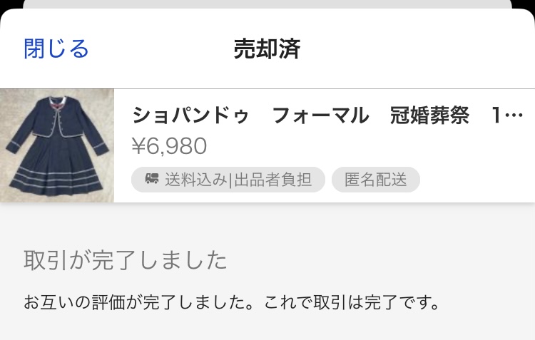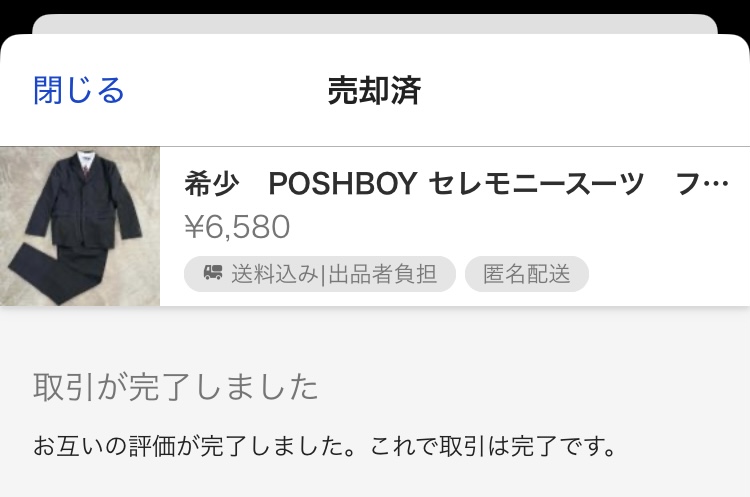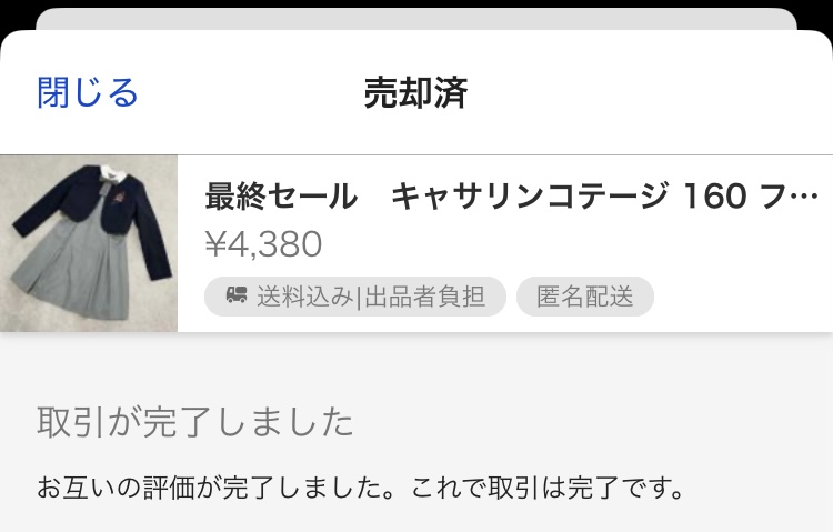 男の子のフォーマルも女の子のフォーマルも何度も売っています。サイズが大きい方が高く売れる、ネクタイなど小物も全て揃っている状態の方が高く売れる、1月〜3月が飛ぶように売れる時期でそれ以外の時期は少し安くなるなど細かい特徴を挙げるとキリがないですが、真夏でもサイズが大きければ売れますし多少の売れる金額の変動はあるものの一年を通して売れるアイテムです。