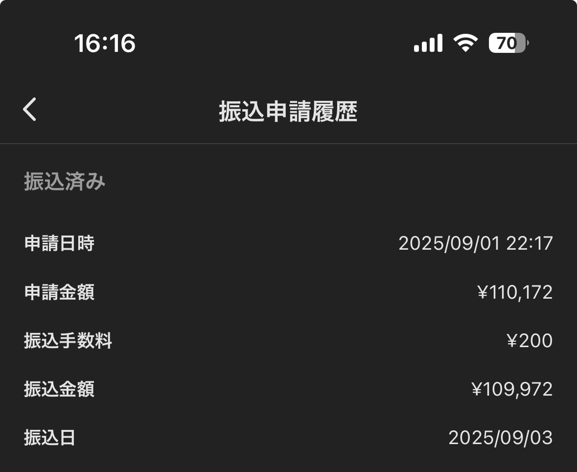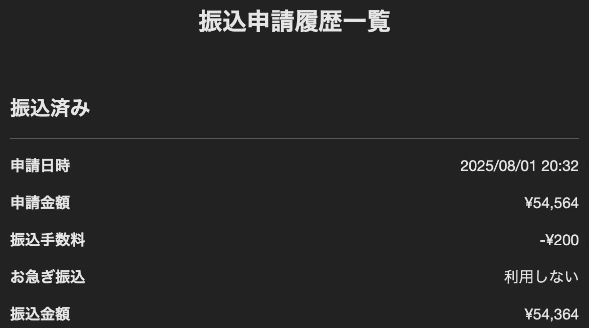 【証拠画像】2025年6月〜8月(開始3ヶ月間)の実績