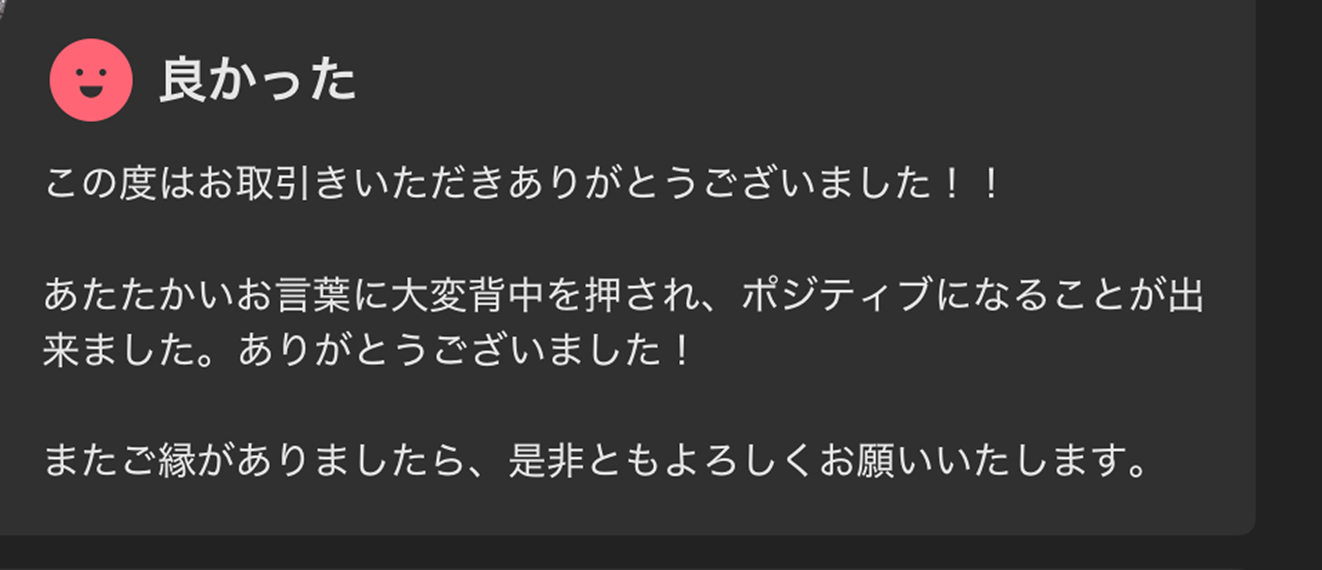 ※最近は通知が届かない不具合が増えているため、お手数ですが反応がない場合は2〜3回ご連絡いただけますと助かります。