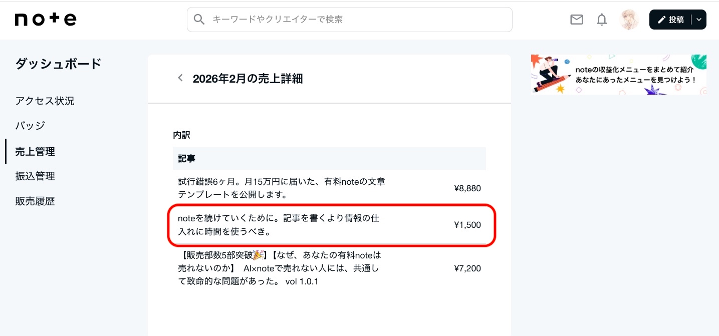 うまくいかないものがほとんどでしたが、たった一つ、実際にnoteがよく売れた手段があったんです。