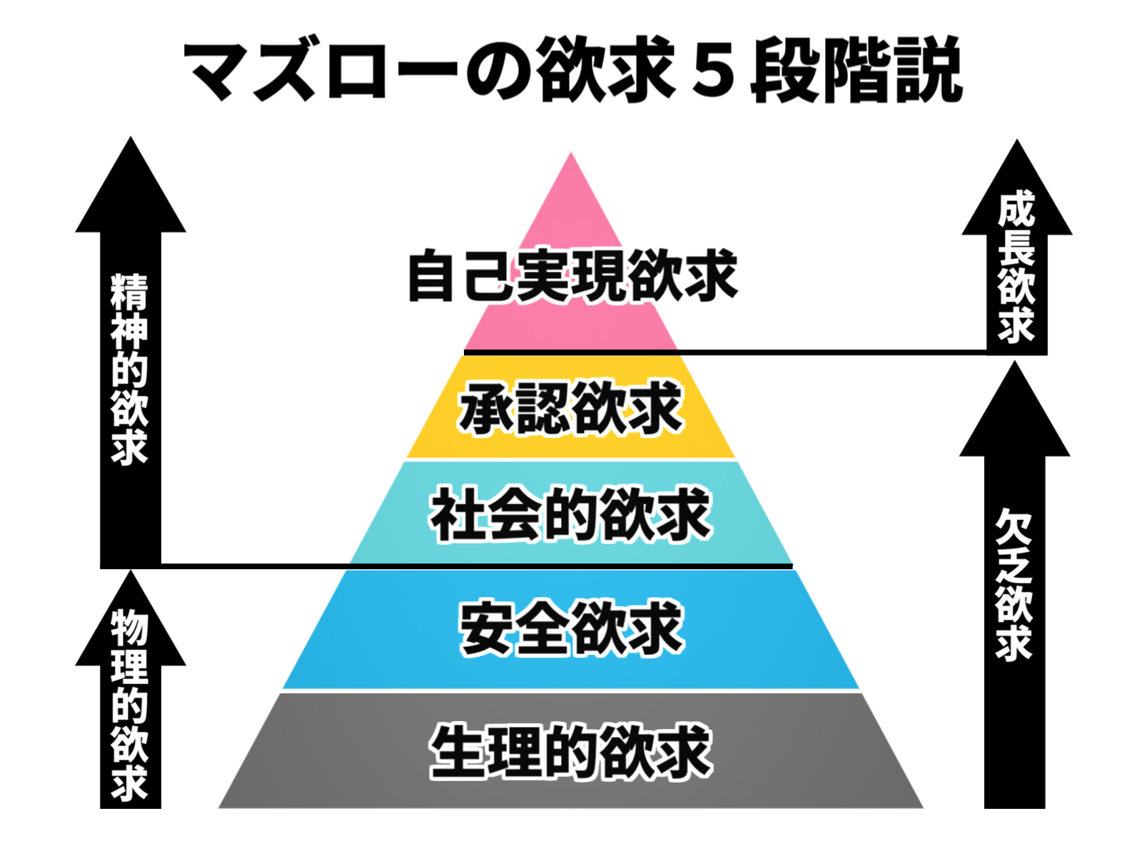 人の欲求(望み)は、下から順に満たされていくっていう考え方だよ👇