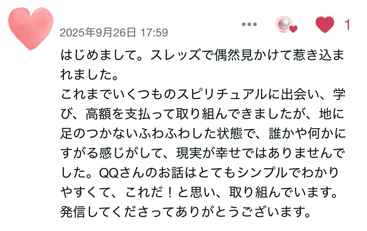 公開日:2025/04/13 09:54 最終更新日:2025/09/28 03:33 記事の感想について🌸 Xでシェア facebookでシェア LINEでシェア 短縮URL 報告する QQ. 『魂の話』についていただいた感想をまとめました。記事を購入するかどうか検討されている方は、ご参考にしていただけると幸いです。*noteで販売していたこともあり、表記にnoteと記載があるご感想もありますが、記事は全て同じ内容です*