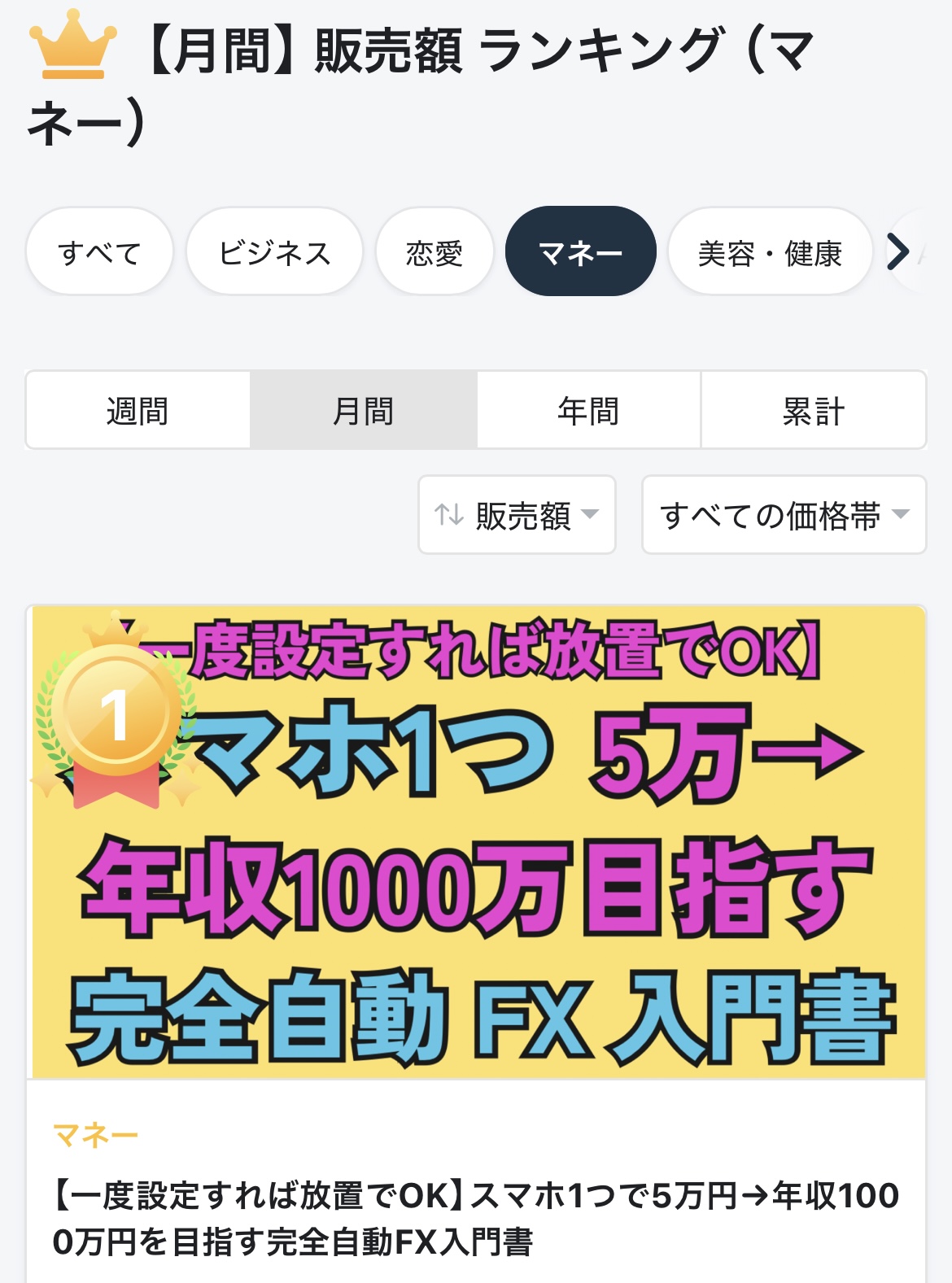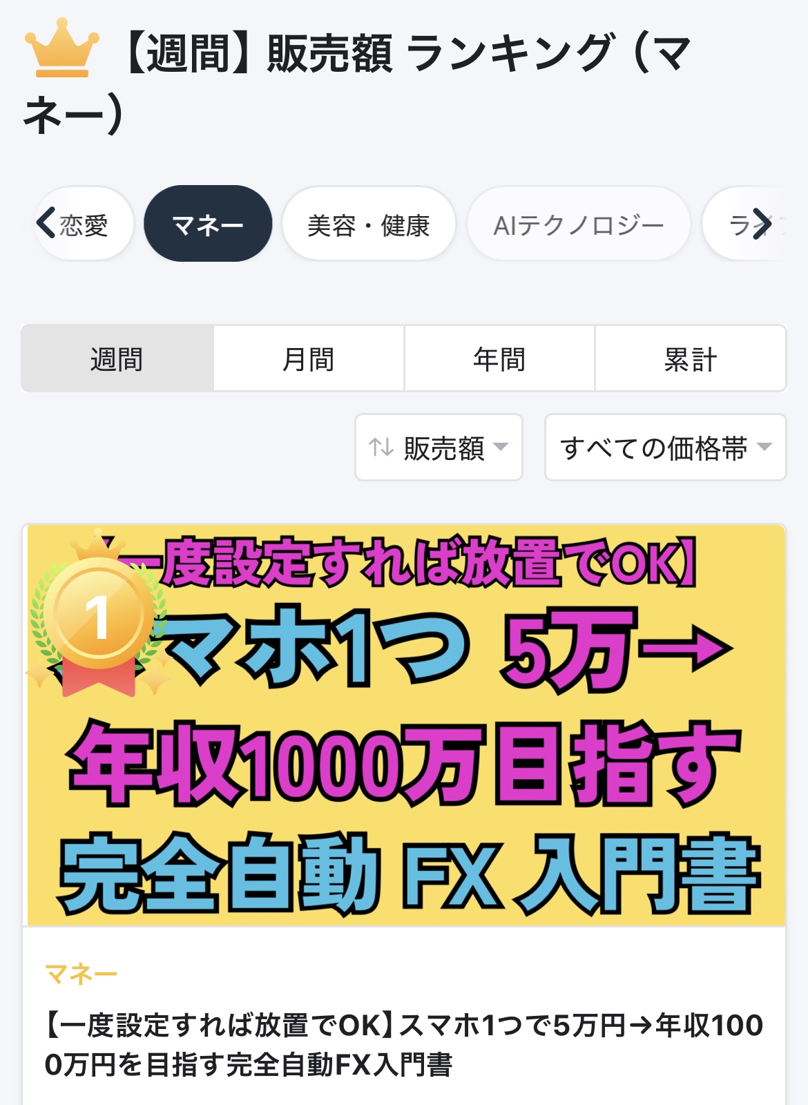 - 2025年10月24日 Tips 【週間】 販売額 ランキング(マネー) 1位