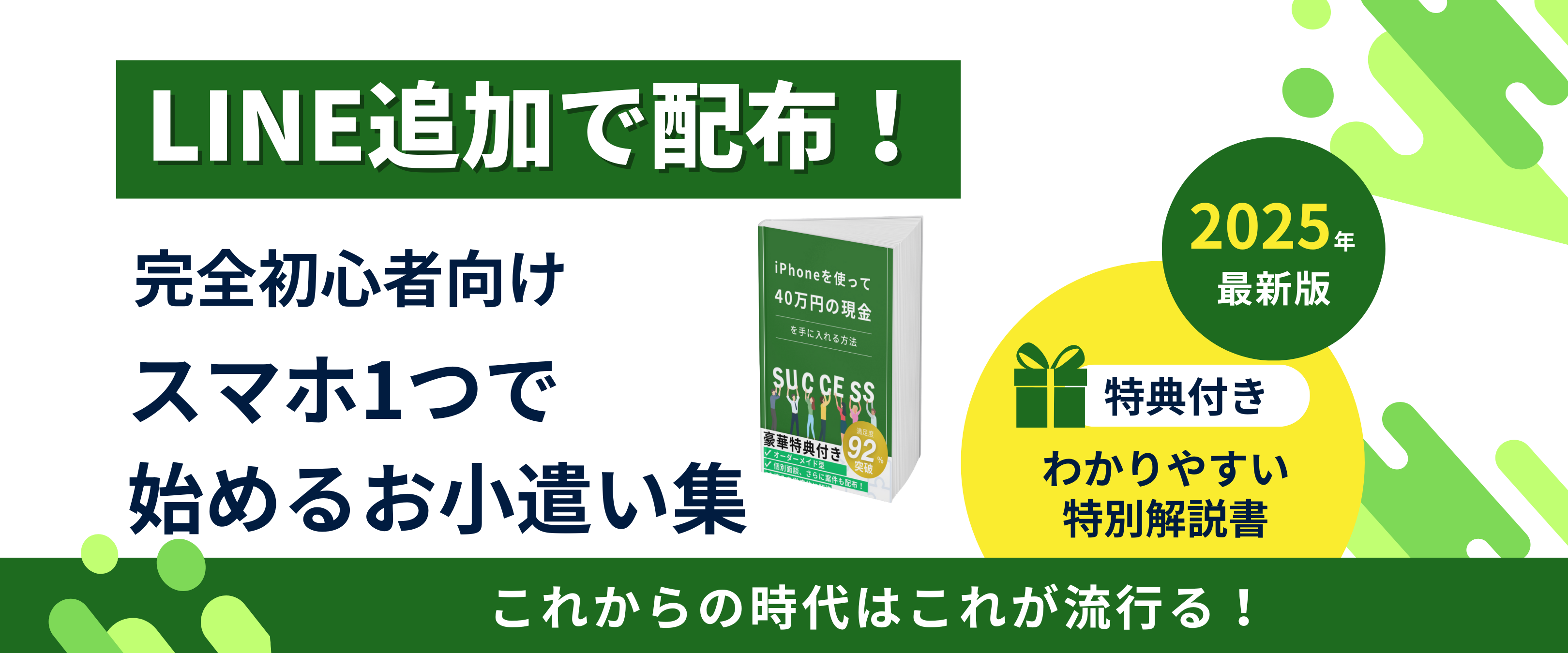 購入者の方限定で、iPhoneを使って再現性高く40万円以上の現金を作る方法をお伝えしています。今すぐに現金が欲しい方や投資にお金を回したい方には原資金を作ることができるので大変おすすめな手法です!