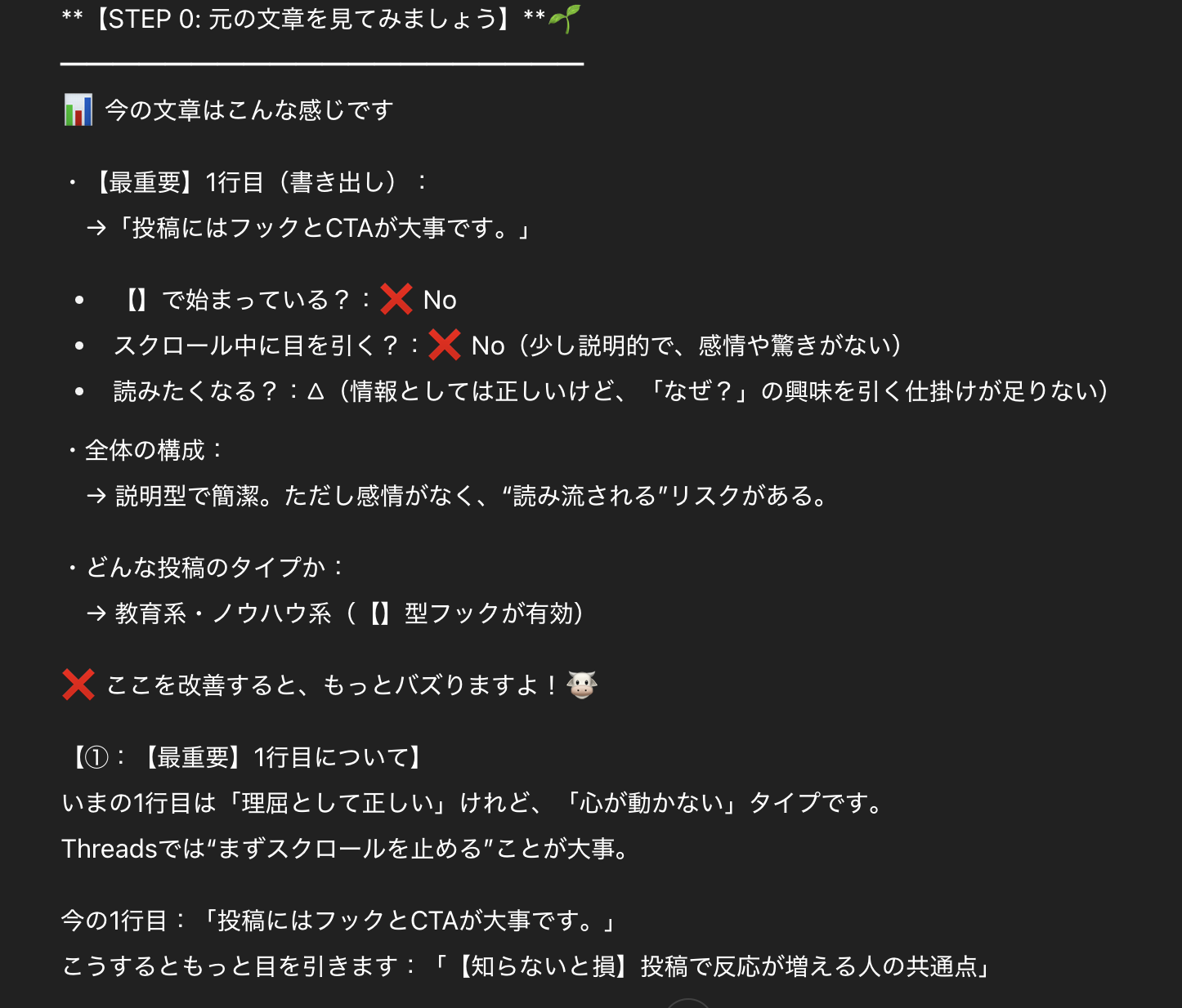 即座に『評価、分析、リライト、〇〇(今回の内容)』までしてくれます。