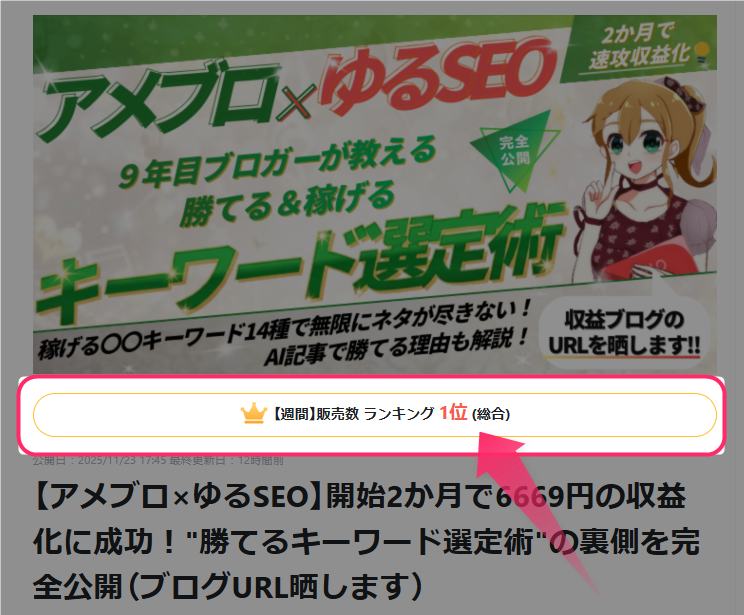 - 本Tipsのご購入者様限定で、私が2025年9月中旬に立ち上げ、現在進行形でSEO流入と収益額が伸びているアメブロのURLを公開します!