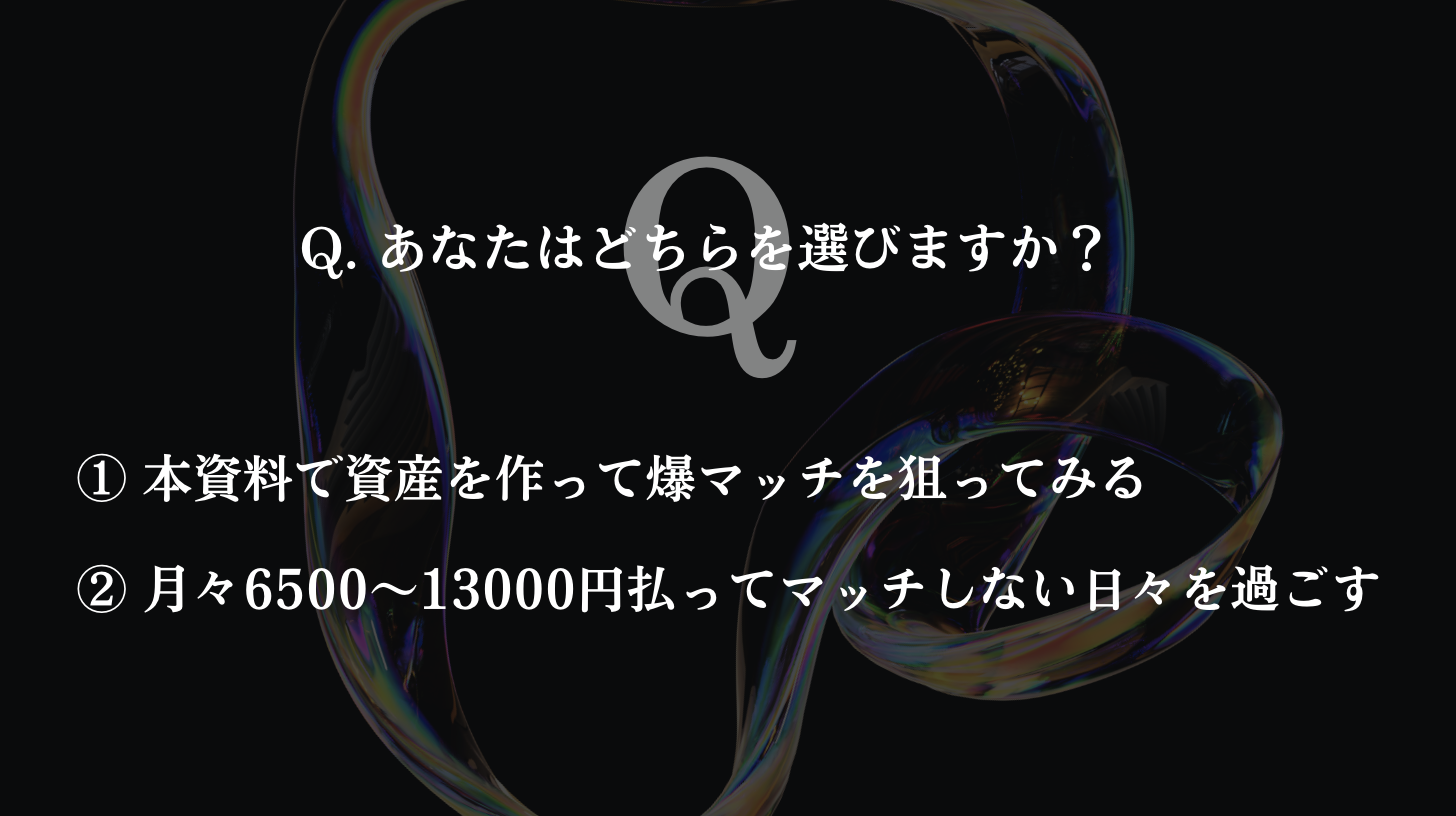 本資料で東カレで長期的に使える資産ができるならぶっちゃけ安い投資です。