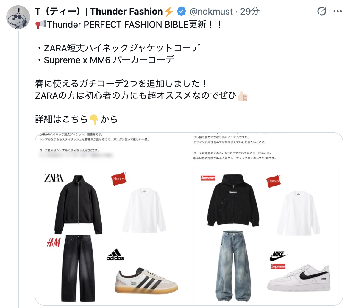 ・2026/3/22【購入特典】「ZARAハイネック短丈ジャケットコーデ」と「Supreme x MM6パーカーコーデ」を追加