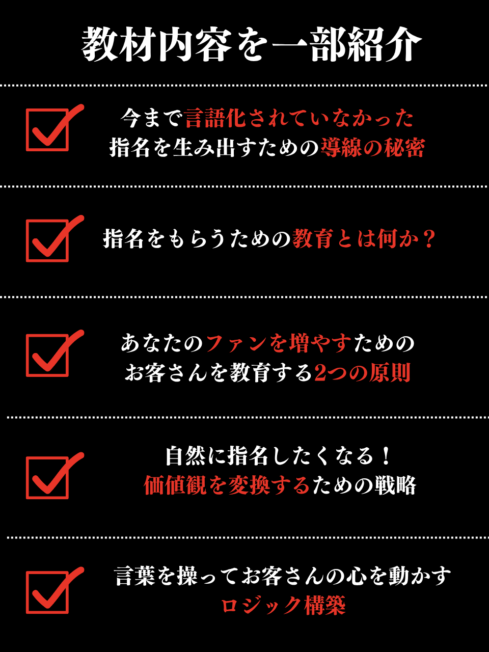 教育を実践すれば、たった数件の指名アップで元が取れます。