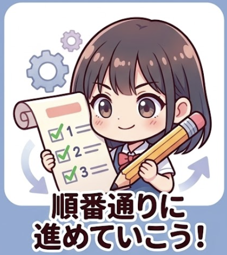 では次から、全体の流れが見やすくなるように、やることを順番に整理しながら進めていき