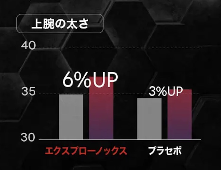 そんな方には朗報です。エクスプローノックスはトレーニングしながら飲むことで、全く飲まない人より3%多く筋肥大したことが記録されています。