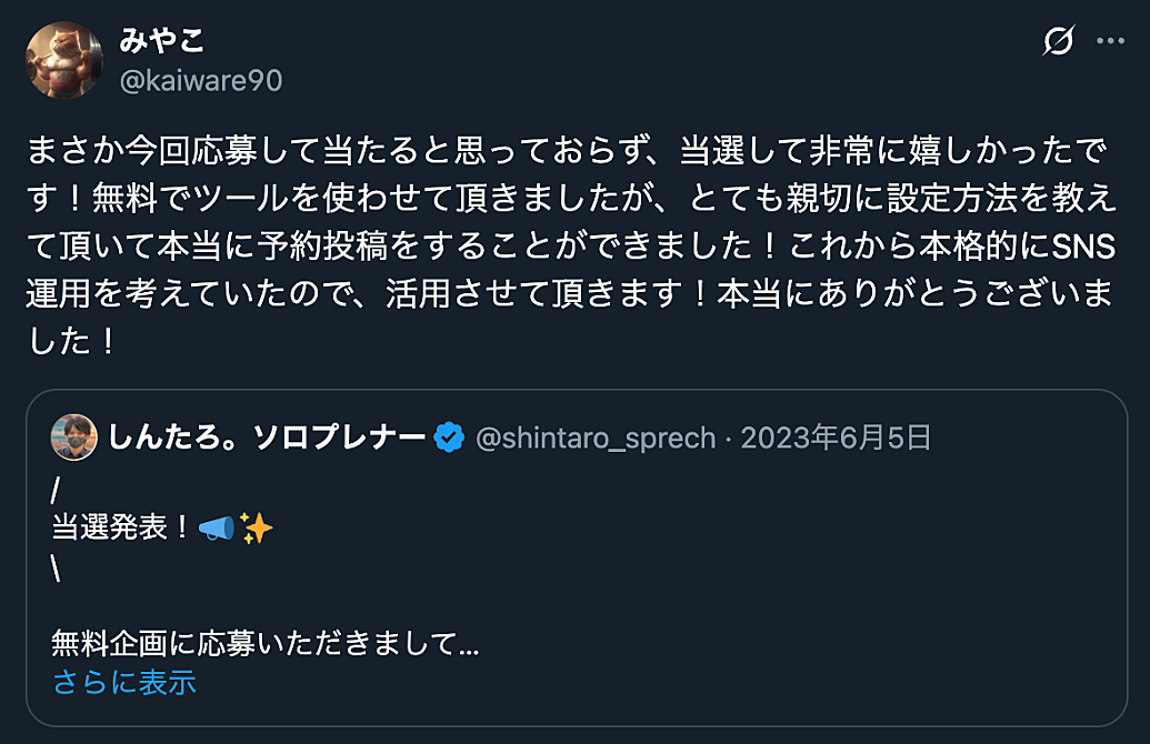- 予約したポストすべてを日時の時間予約投稿を設定して、「毎日ぽちぽち手動でポスト予約」から卒業できようになったり