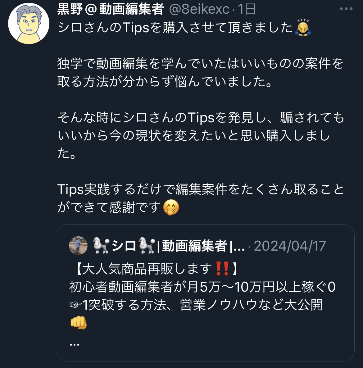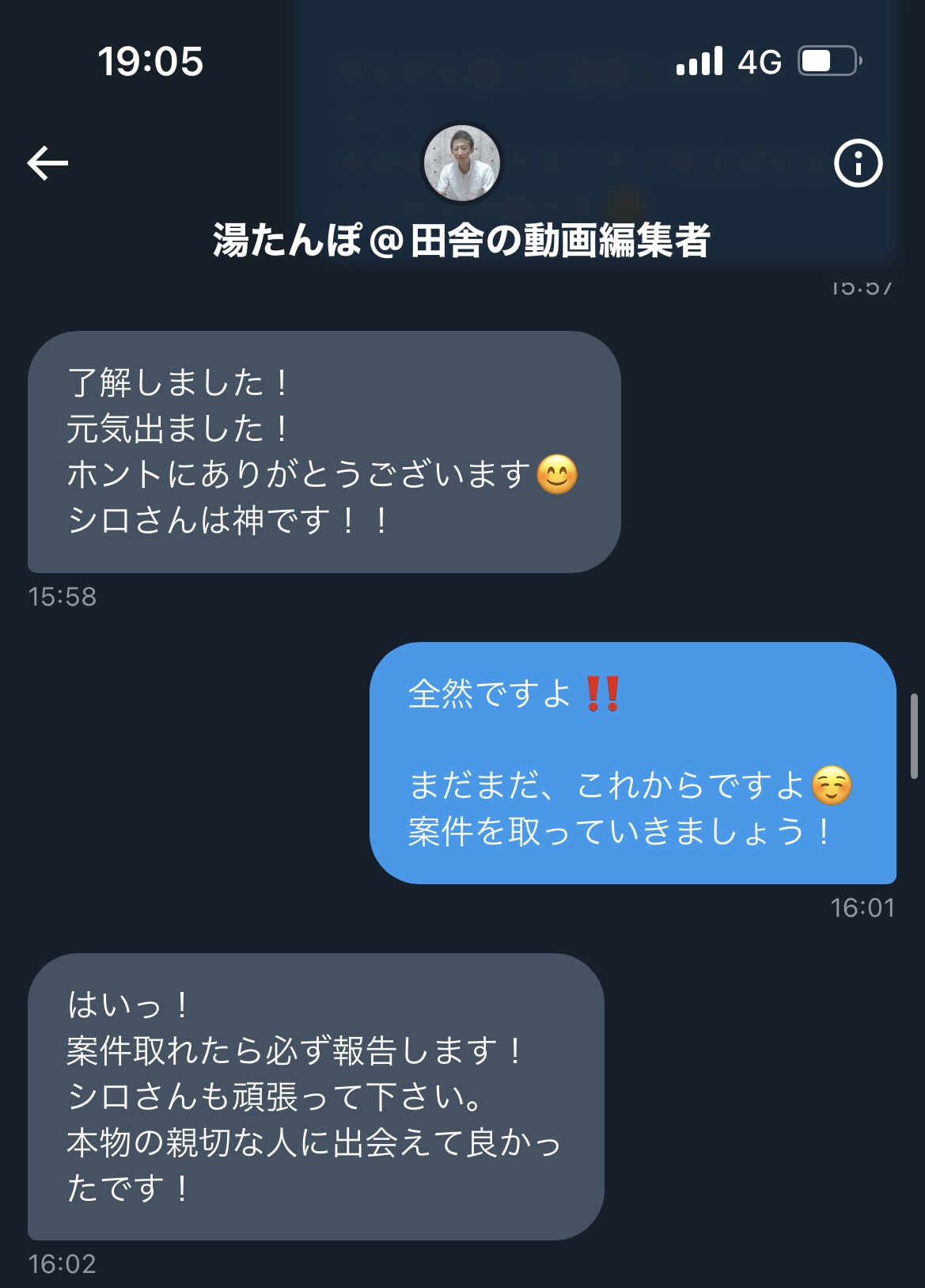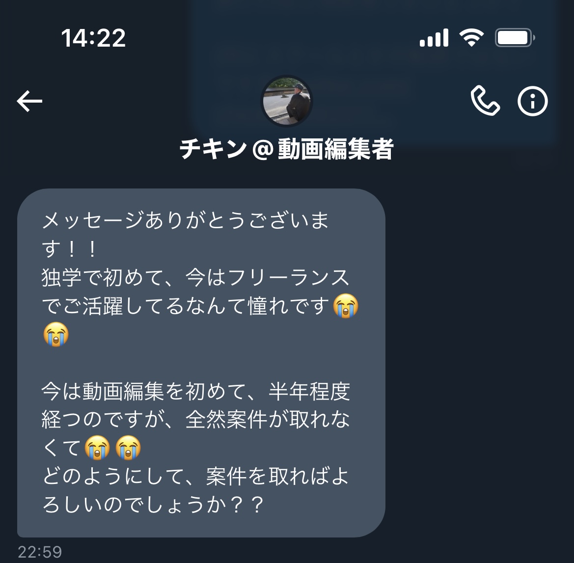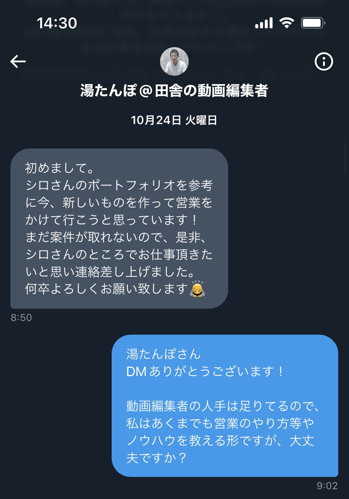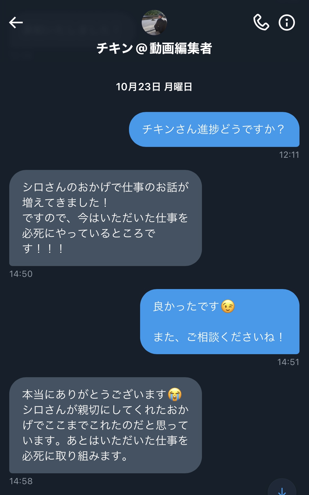N.yさんは初心者の動画編集者で悩まれていましたので、Xでの営業秘訣を伝授しました。その結果☟☟
