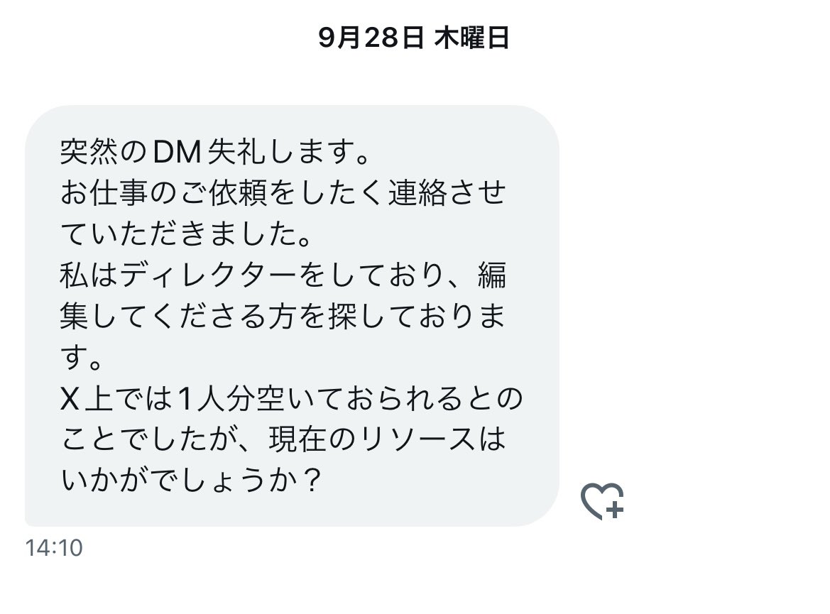その中で制作会社の社長に言われたのが『我々はYouTube、広告等などでお客様へ魅せる仕事をしているため、Xの動画編集アカウント自体が疎かな人に仕事を任せられない』