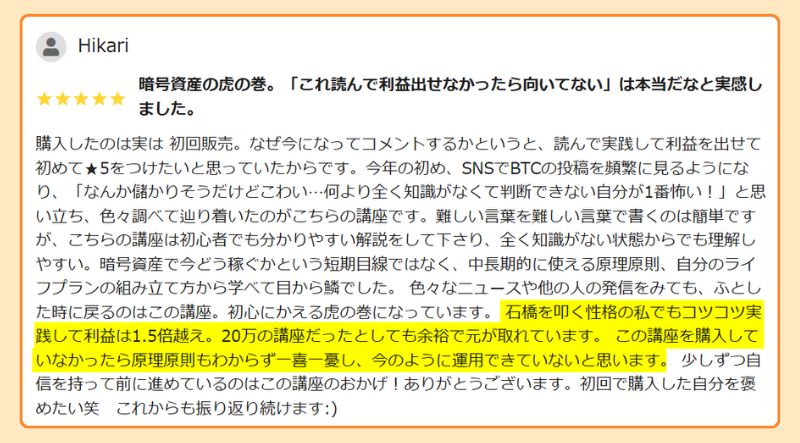 むしろ購入費をペイできない方がおかしいレベルですし、もしこの講座を見て成果が出ないようであれば、もう資産形成は諦めた方が良いです。