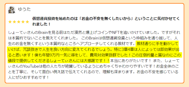 レビューの99%以上が★5という驚異の高評価率、そして熱のこもった長文レビューの多さはおそらくBrain史上初です。