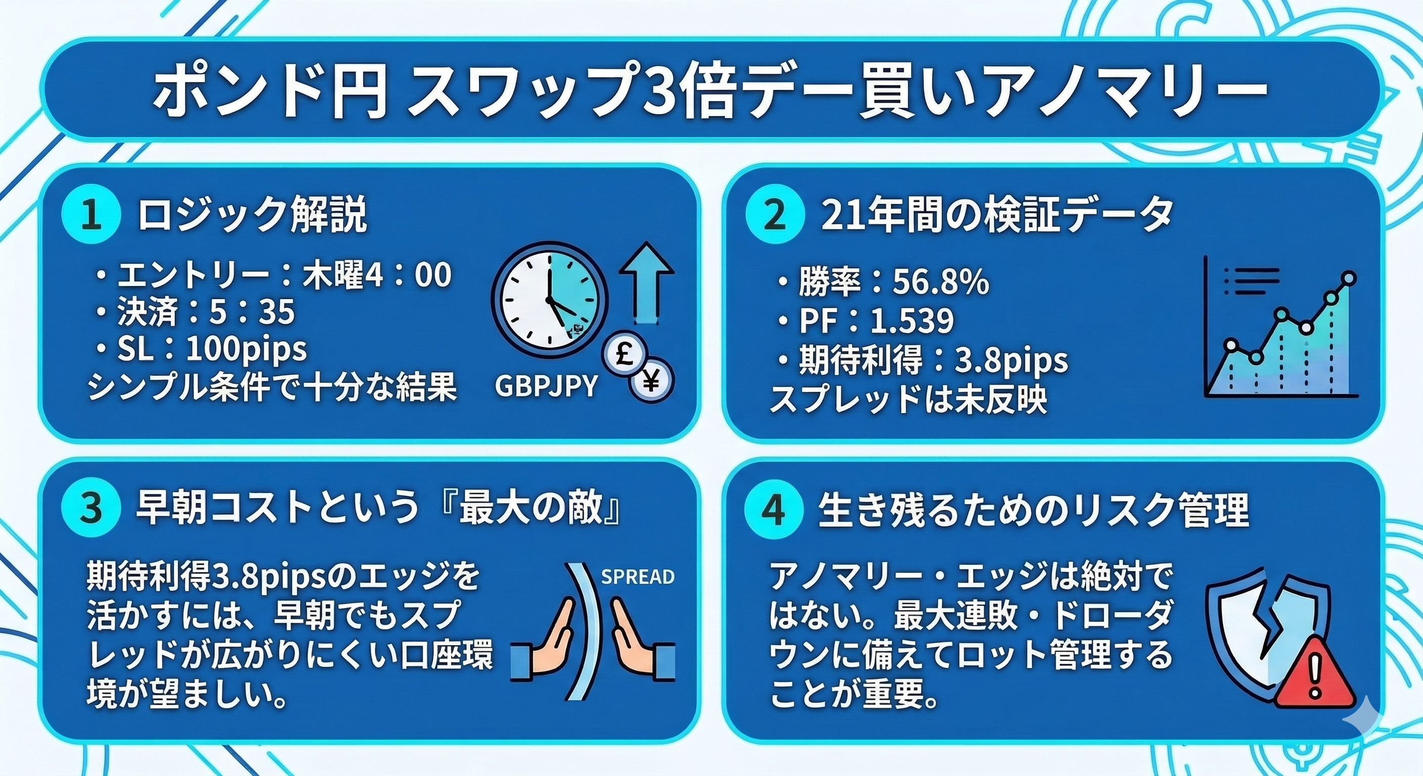 今回公開するのは「ポンド円」に特化した、スワップ3倍デーを狙うアノマリーです。