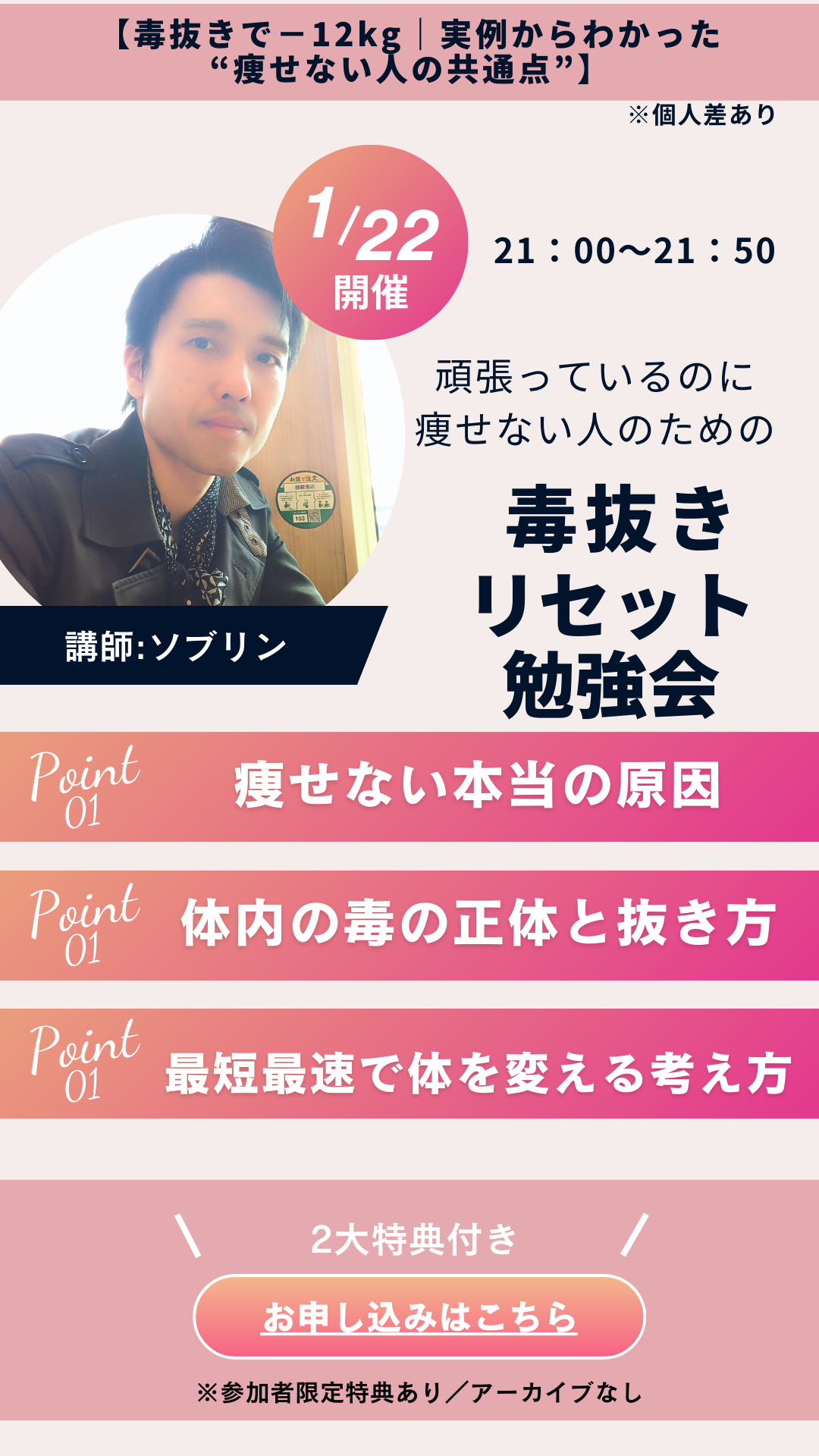 明日1/22(21:00〜)開催の 【毒抜きリセット勉強会】では
