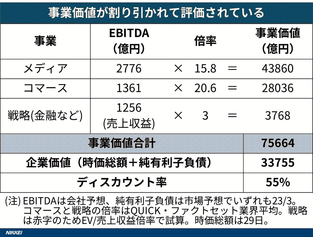 ただ、足元では成長が鈍化する。8月3日発表の22年4~6月期決算は、調整後のEBITDA(利払い・税引き・償却前利益)は過去最高となったが前年同期比の伸び率は微増だった。成長鈍化は巣ごもり需要の一服などの要因もあるが、「LINEなど買収した事業と既存のヤフー事業で相乗効果が思うように創出できていない」(ZHD関係者)面もある。2022年10月1日 日本経済新聞