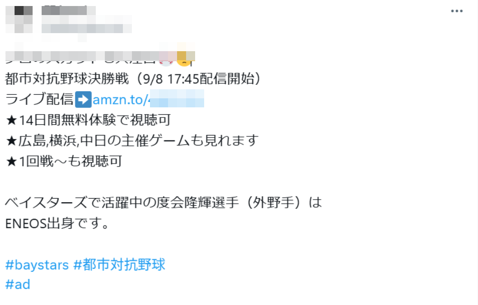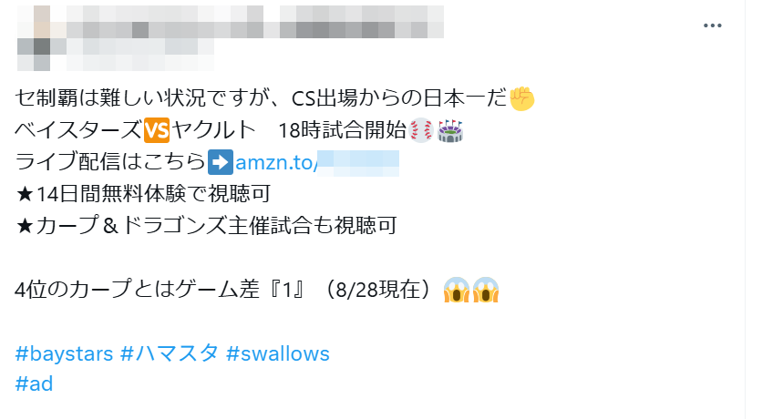 横浜DeNAベイスターズの主催試合のライブ配信は、U-NEXT or プライムビデオチャンネルの「J SPORTS」で紹介できます。