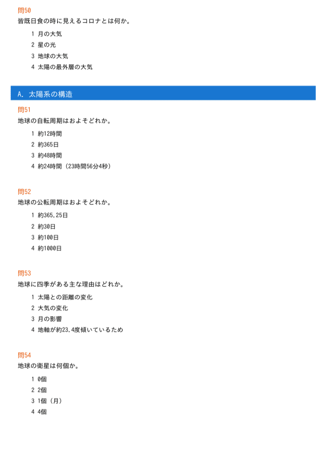 • 第1章:太陽系・惑星 (100問)
