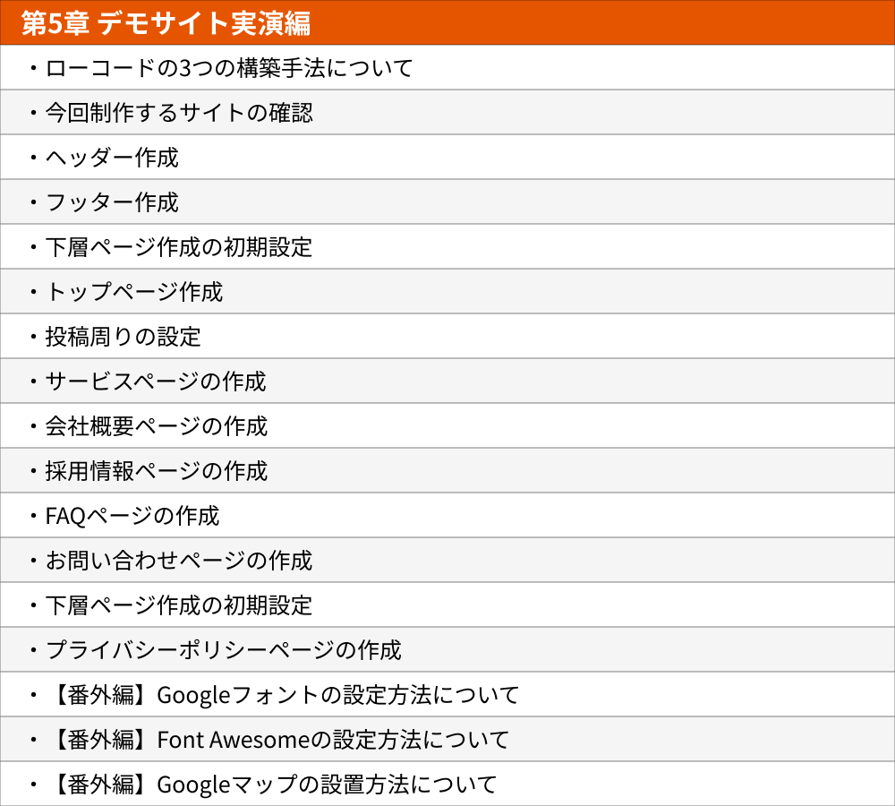 ・そのうえで、デモサイトの実演を通して実際に手を動かしながら応用力を身につける構成となっています。