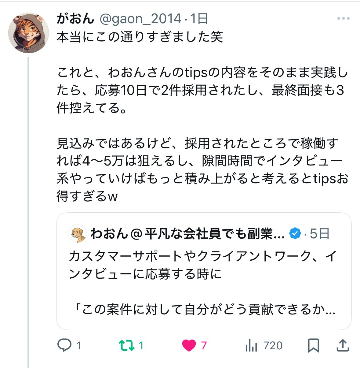 そこの応募文、テスト、合格までのやり取りをすべて記載しています。