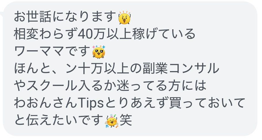 また現在の収入に+20万以上欲しい方にもぜひ叶えられると自負しております。