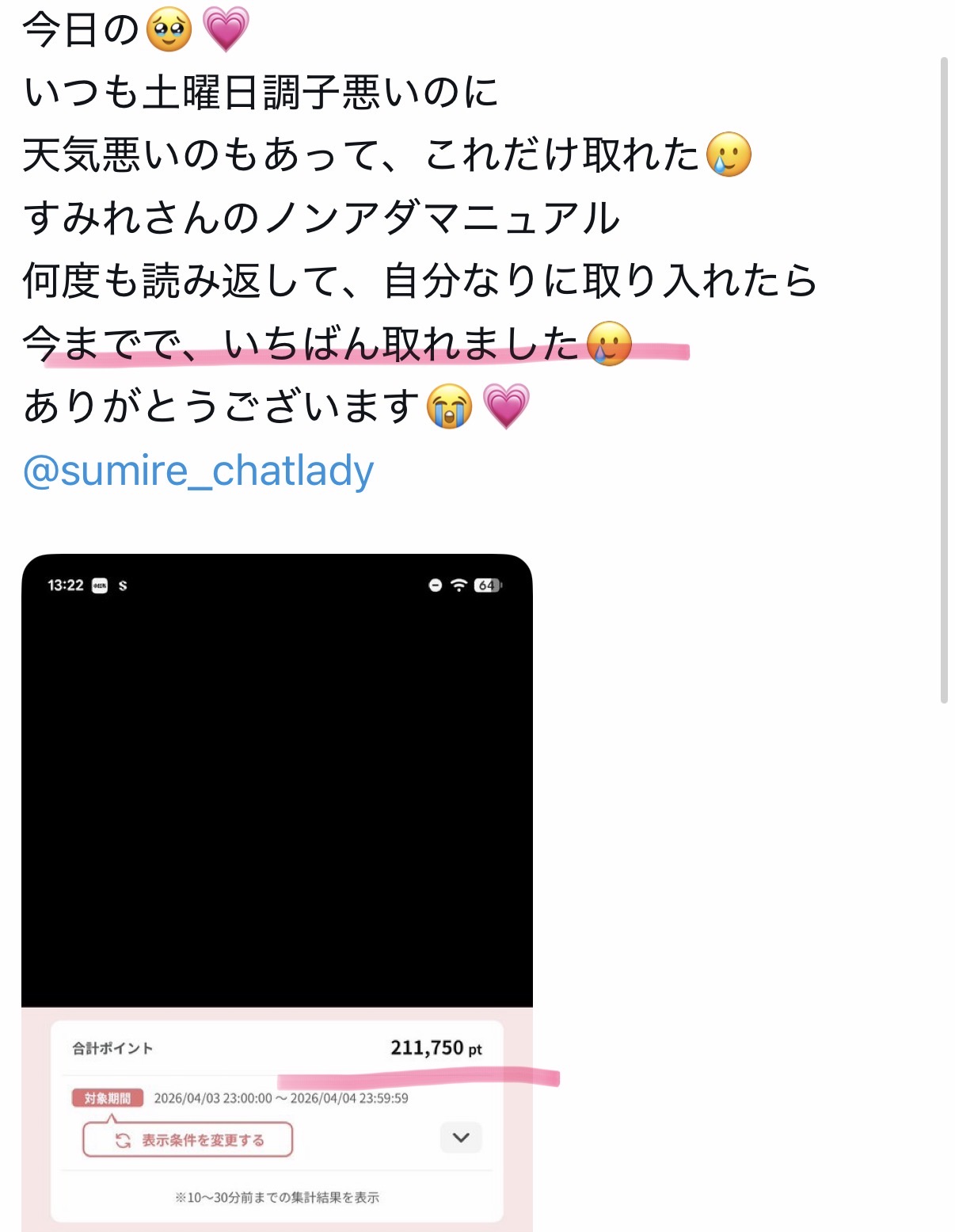 - 1日で21万ポイント