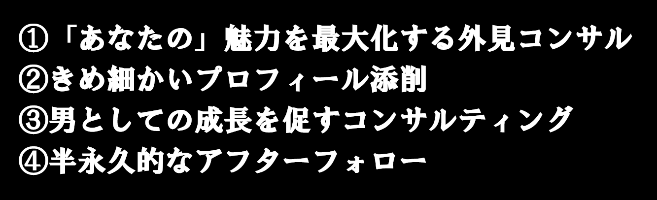 私のTinderコンサルを受けた方が、どういうサービスを受けて、ご自身がどういうふうに変化して、どういう結果を手に入れられるか、案内&説明しています。