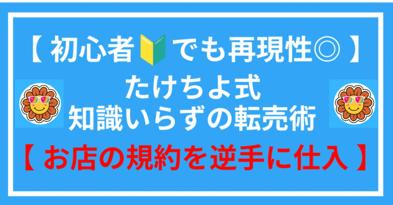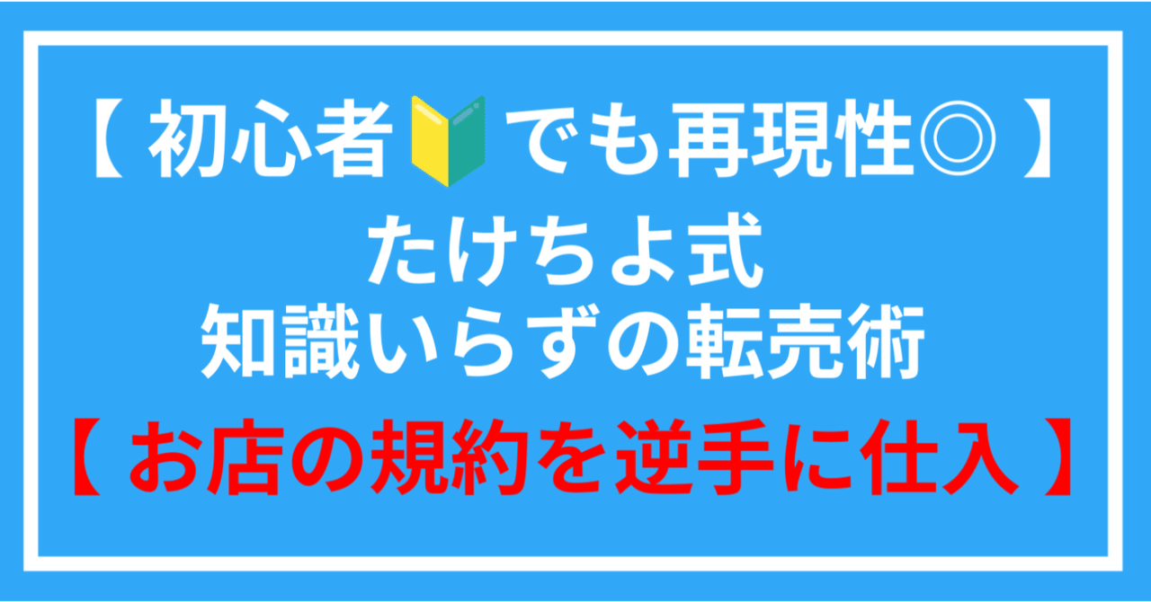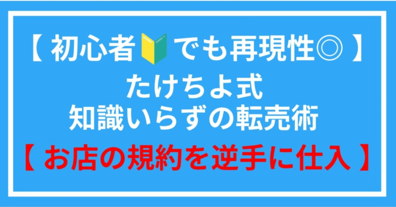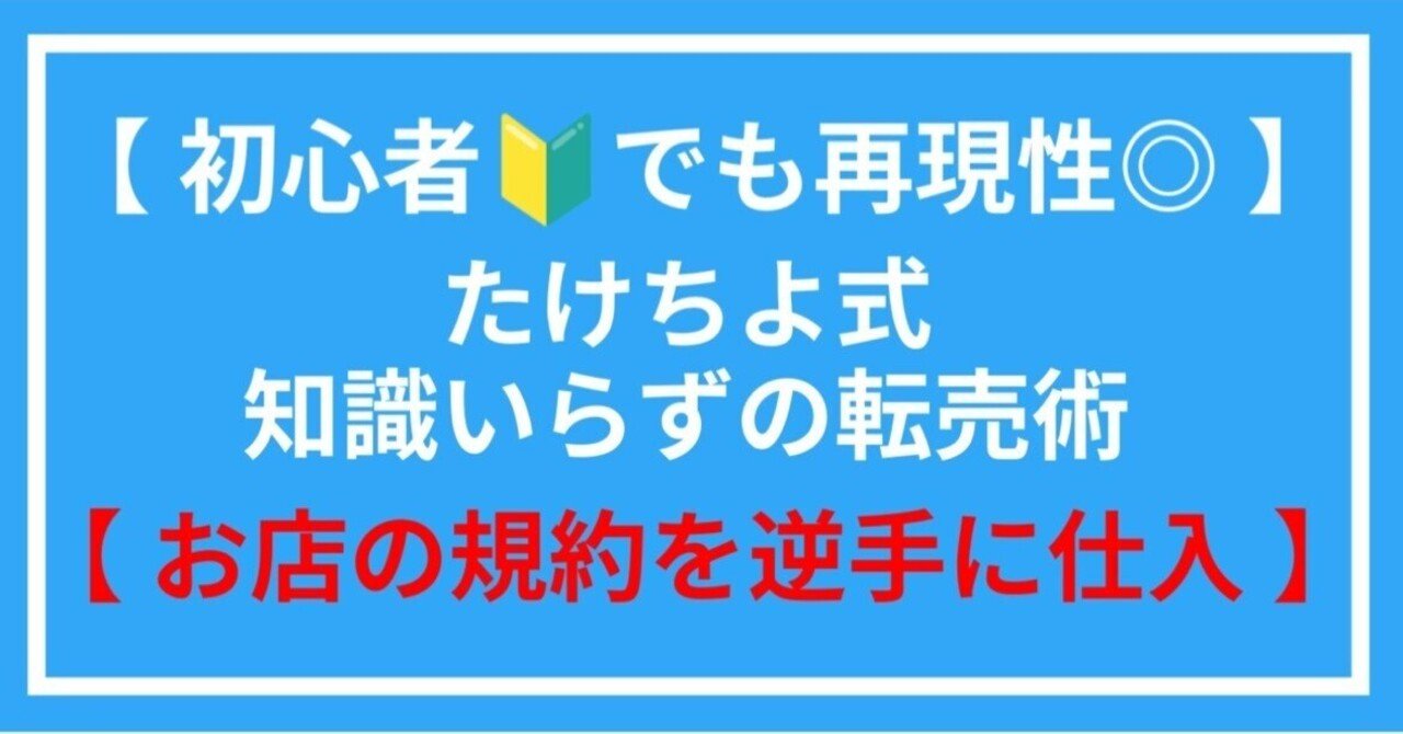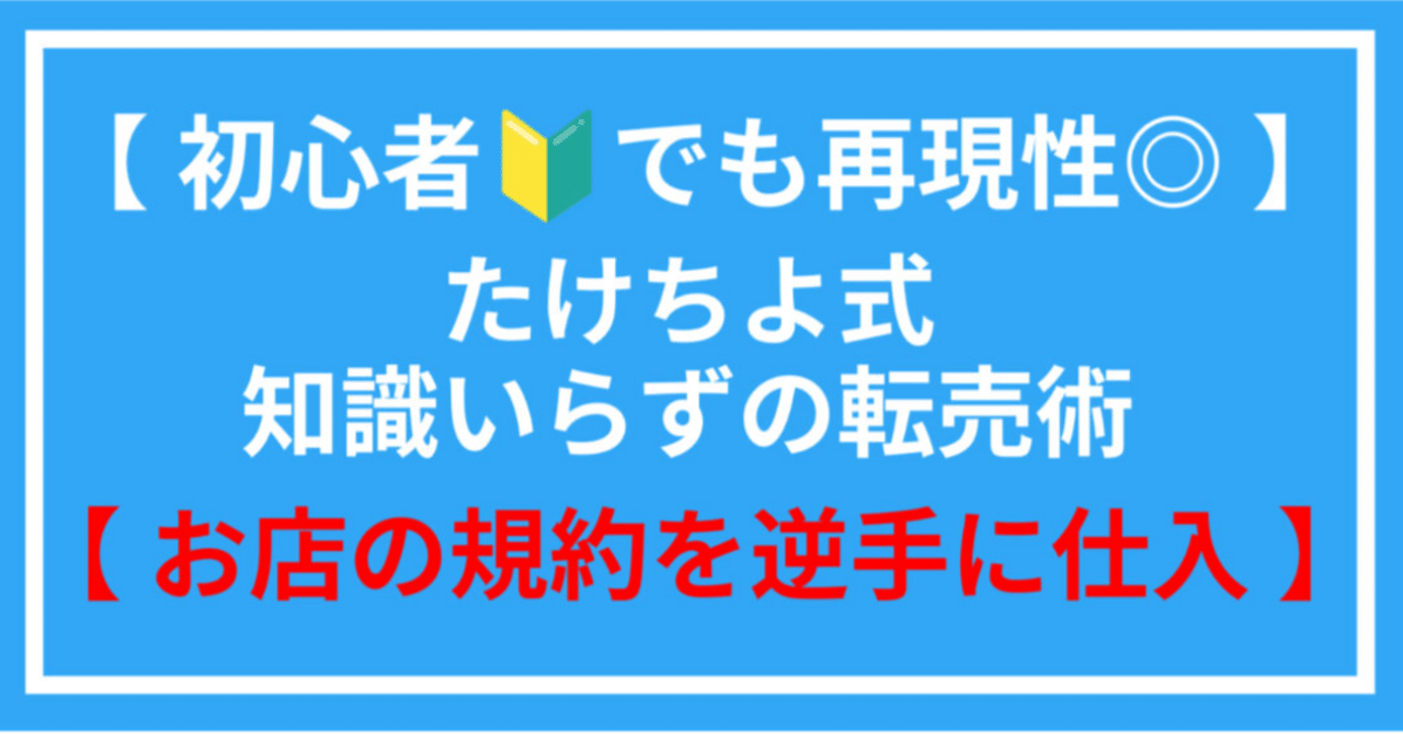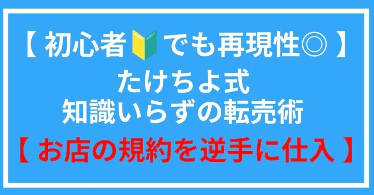 【初心者🔰でも再現性◎】たけちよ式知識入らずの転売術【お店の規約を逆手に仕入れ】を発売してから約半年、多くの人の手にわたり、日々感謝しているたけちよです。