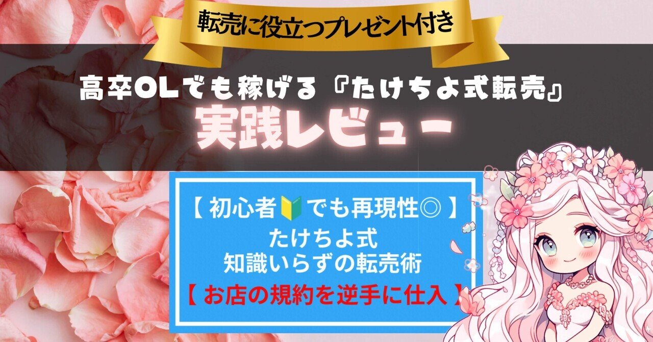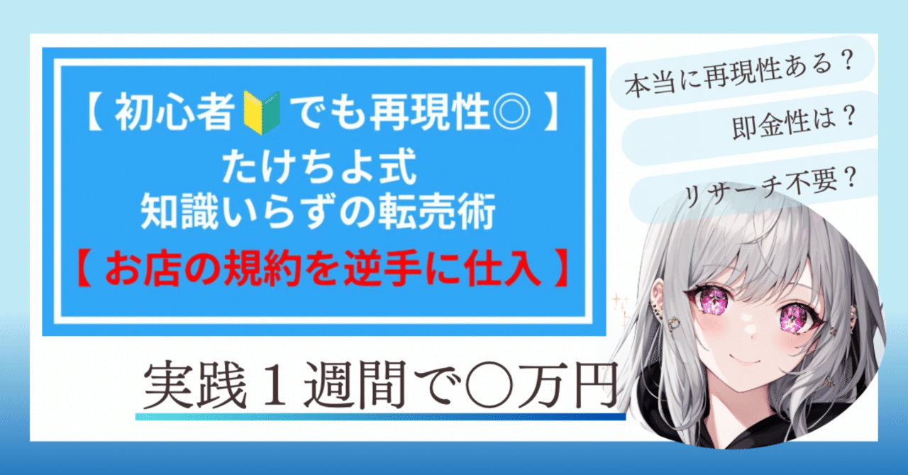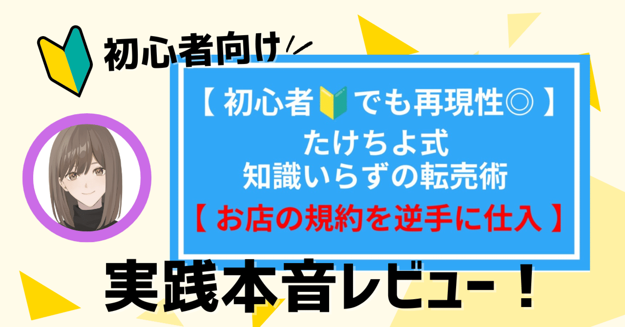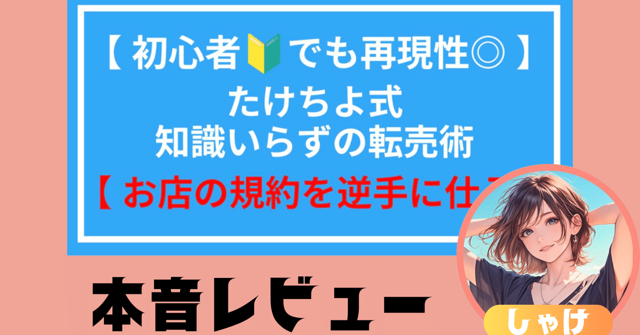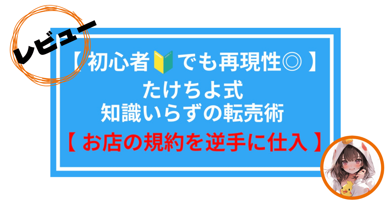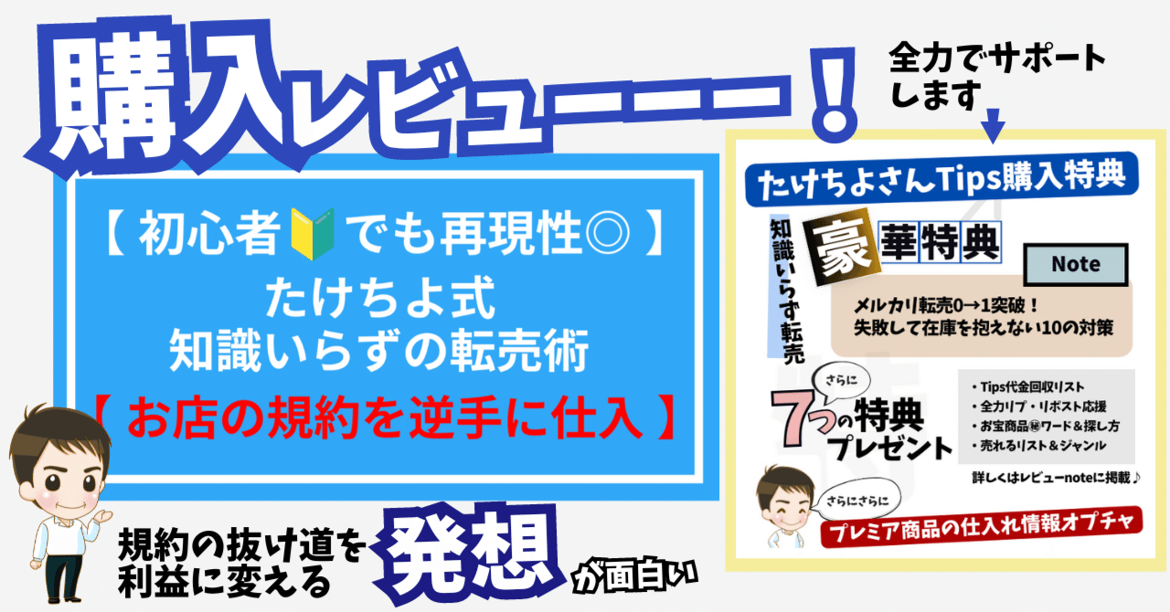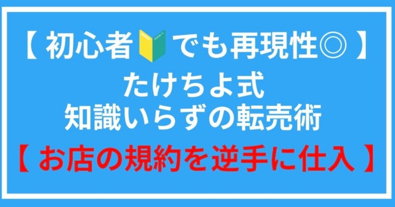 【初心者🔰でも再現性◎】たけちよ式知識入らずの転売術【お店の規約を逆手に仕入れ】を発売してから約半年、多くの人の手にわたり、日々感謝しているたけちよです。