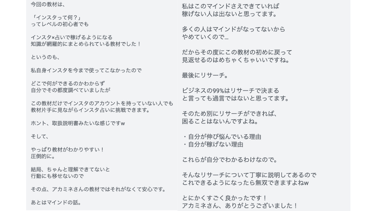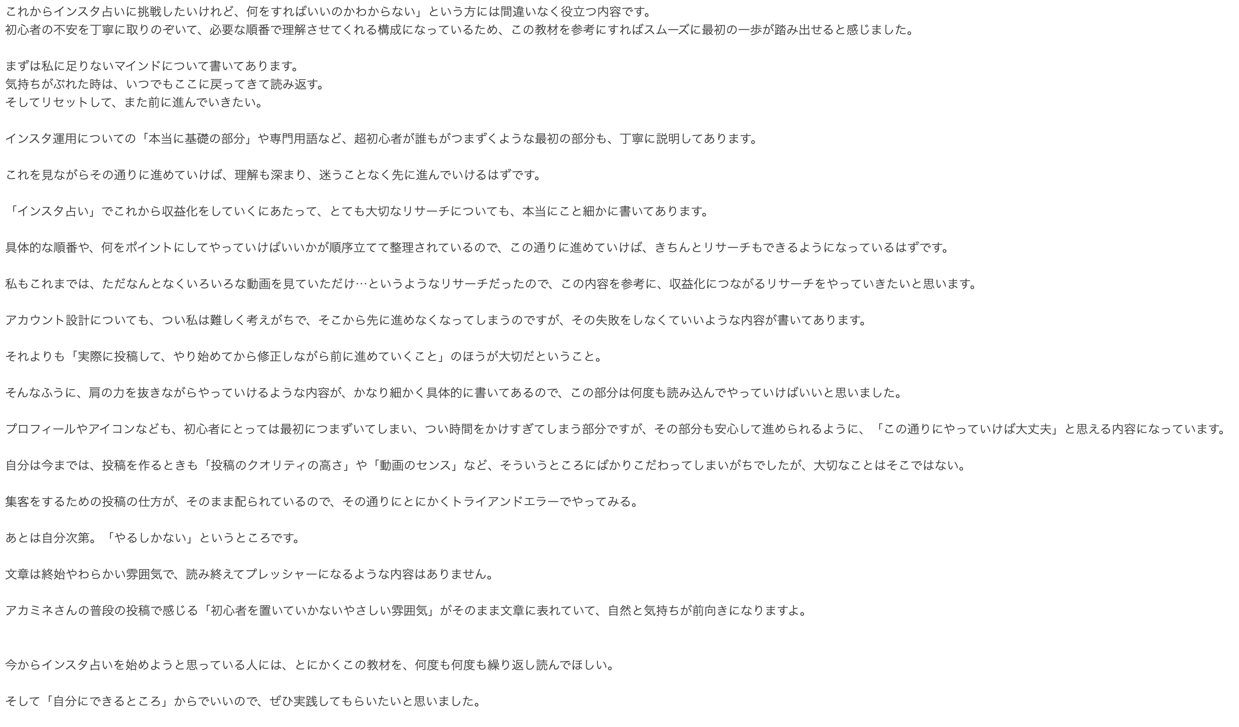この教材は「占いの上級ノウハウ」ではなくインスタで占いを収益につなげる仕組みを学ぶ内容です。