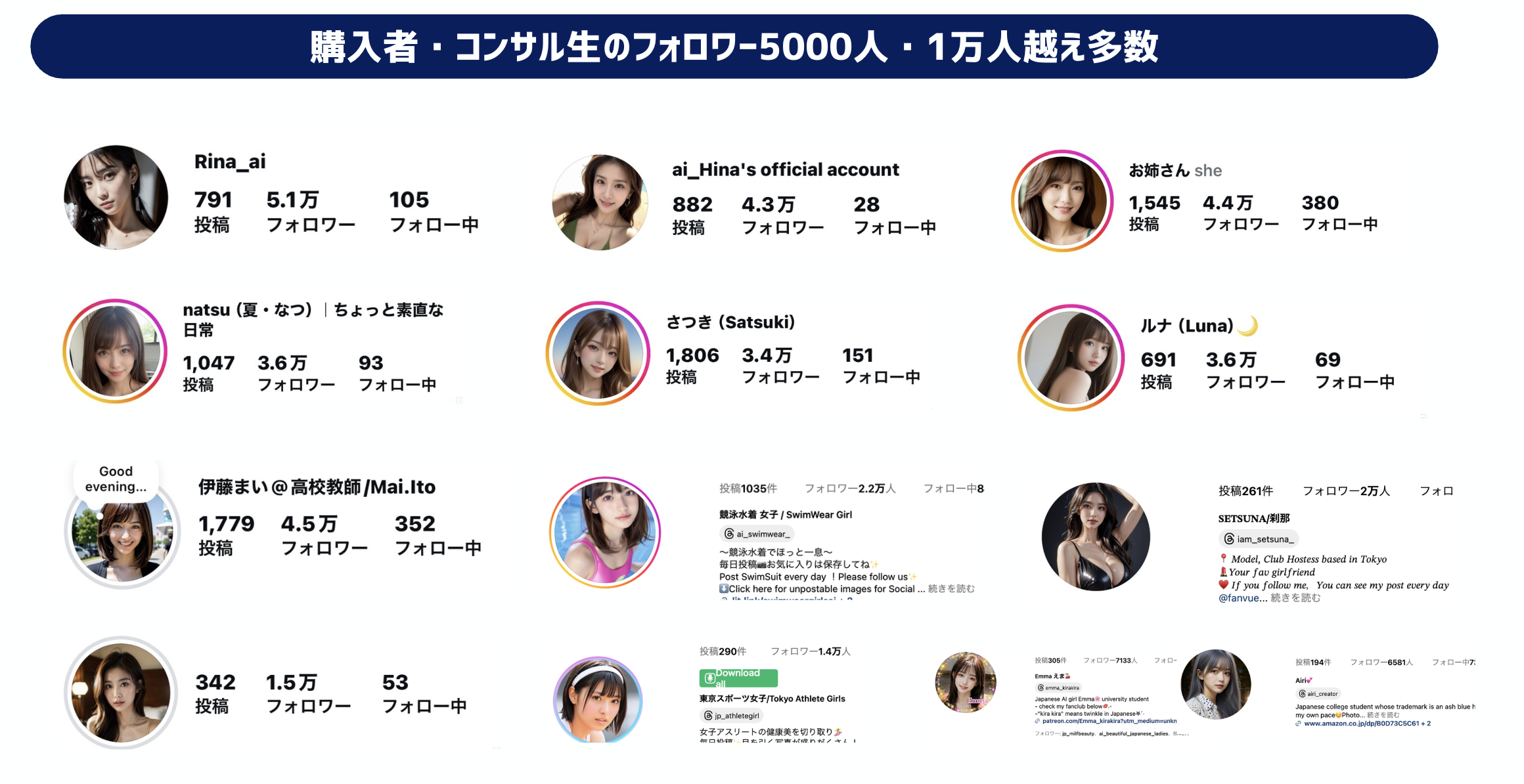 インスタ美女アカウント総フォロワー数約10万人
