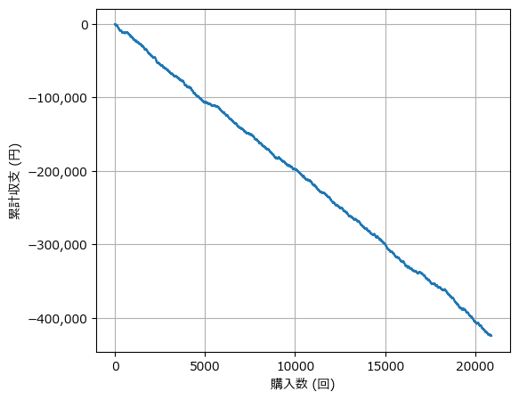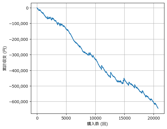 今回の実験で、最も衝撃的な結果が出たのがこれです。 「そのレースで逃げた馬」を買い続けた場合のグラフを見てください。